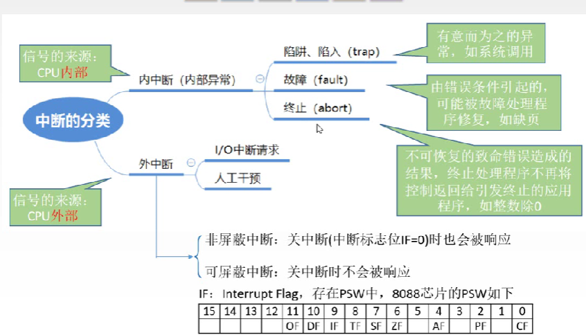 这些触发器可组成中断请求标记寄存器,该寄存器集中在CPU中,也可分散在各个中断源中。