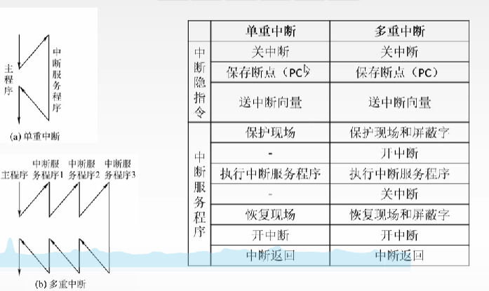 多重中断:又称中断嵌套,执行中断服务程序时可响应新的中断请求