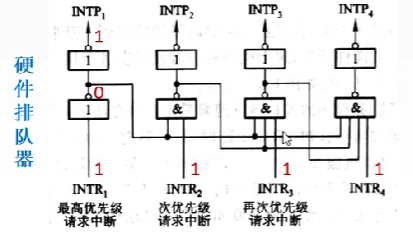 为了记录中断事件并区分不同的中断源,中断系统需对每个中断源设置中断请求标记触发器INTR,