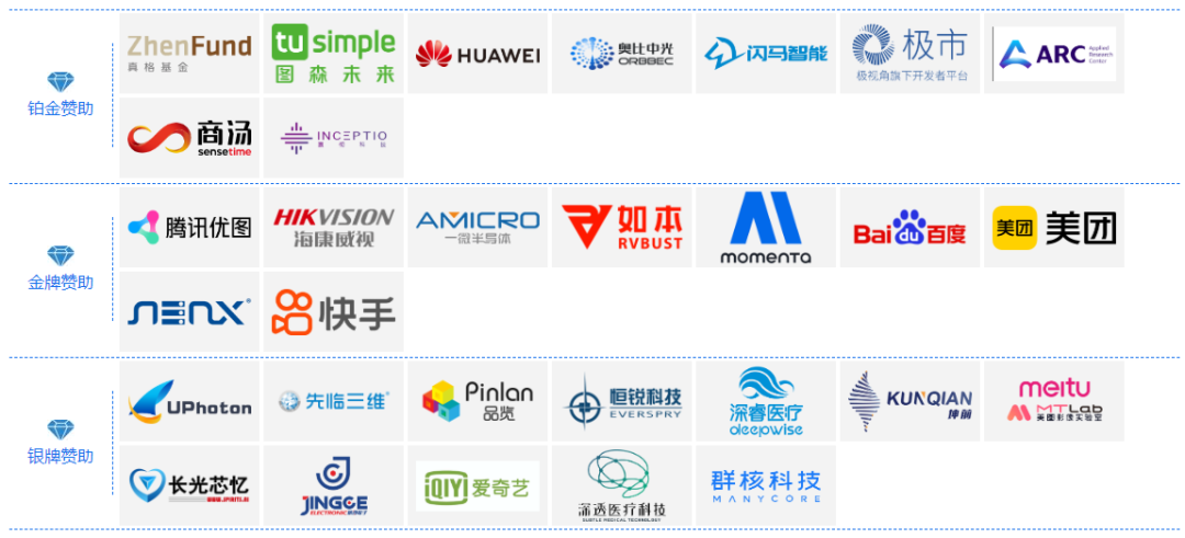 金牌赞助商:腾讯优图、海康威视、一微半导体、如本科技、Momenta、百度、美团、超集信息、快手
