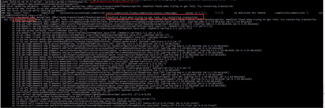 我检查了所有用到佣金账户表的sql和代码处理流程顺序都是一致的,没有发现问题,于是我就去找DBA要了死锁的详细日志.