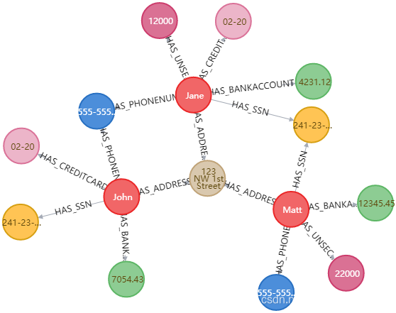 图的relationship是账户持有人has其他的node,如HAS_SSN