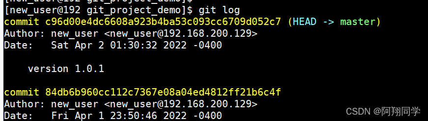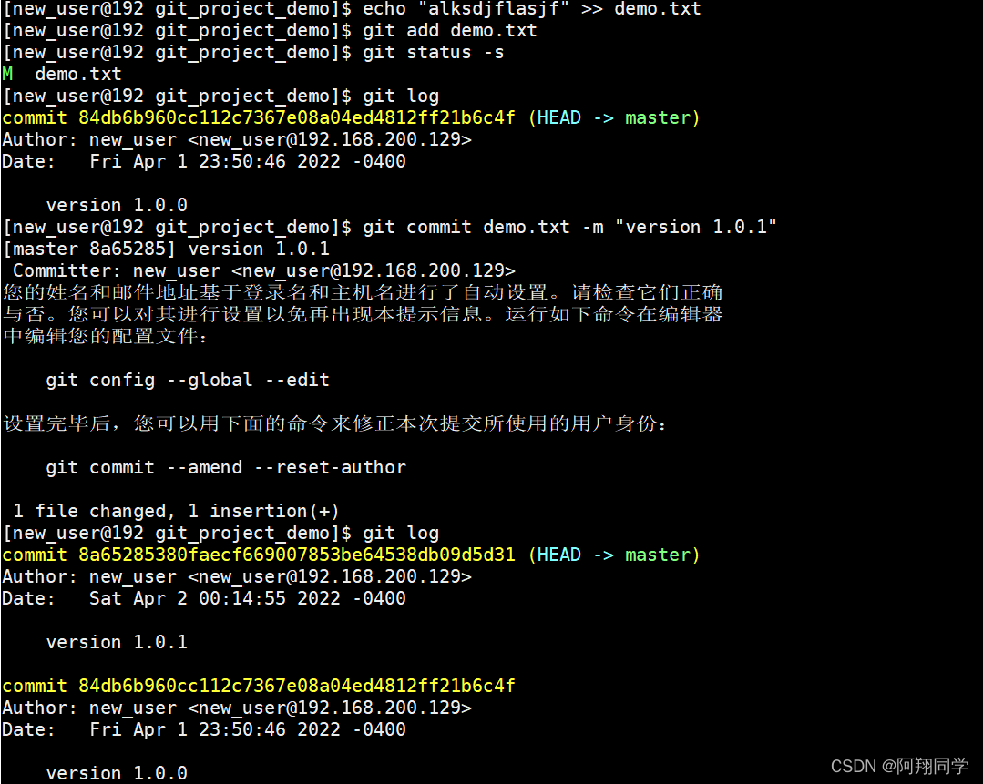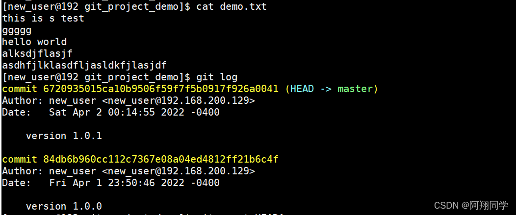 如果又想把 demo 恢复到1.0.1版本,版本指针移动最新版本【同样不会更改本地文件内容】,需要在checkout一下demo