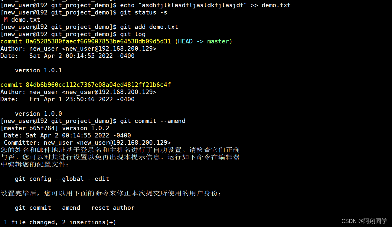 2)在version1.0.1中增加了一个文件demo2.txt【git reset HEAD^ 某个文件】