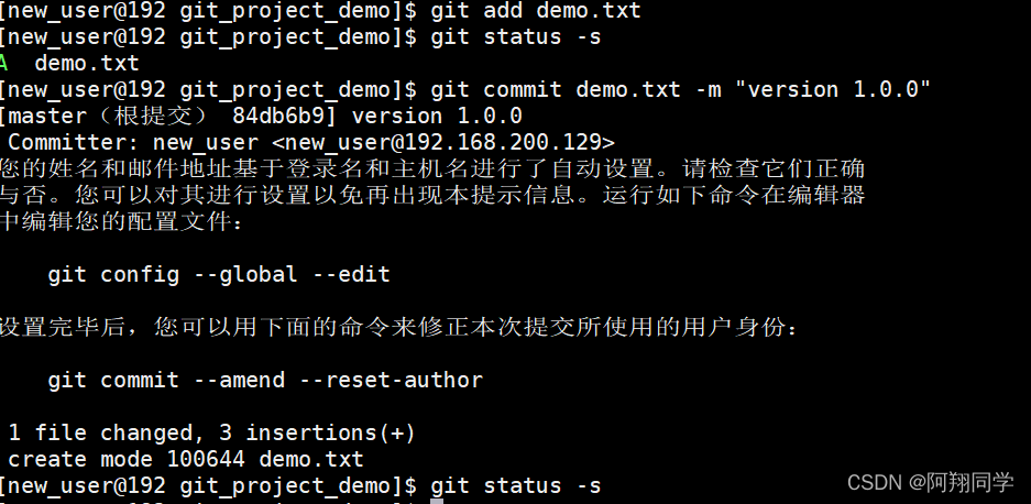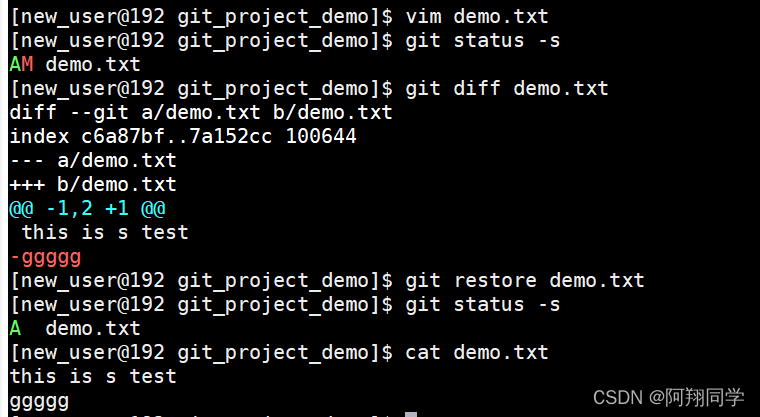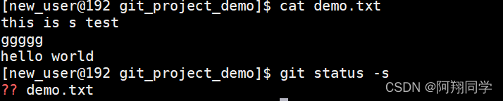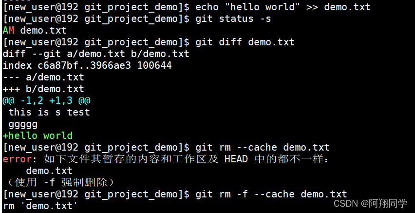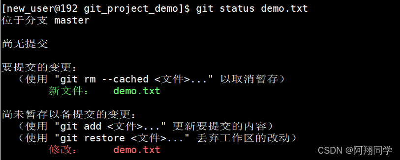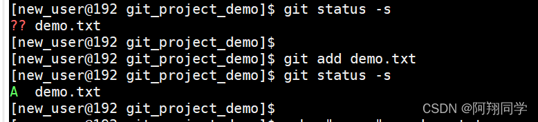 1)git add demo.txt到本地缓存之前和之后的状态【文章莫问git status中字符的含义】