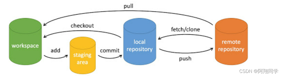 Git 常用的是以下 6 个命令:git clone、git push、git add 、git commit、git checkout、git pull,命令从0开始,我们一一介绍。