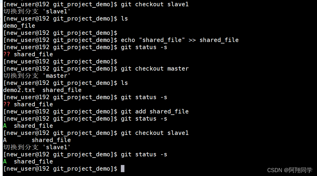 在master提交之后,slave1分支就看不到这个shared_file文件了