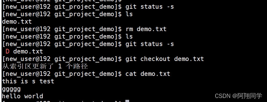 2)我们不小心删除了工作区文件和上面类似 也通过git checkout 从本地仓库中拉去下来