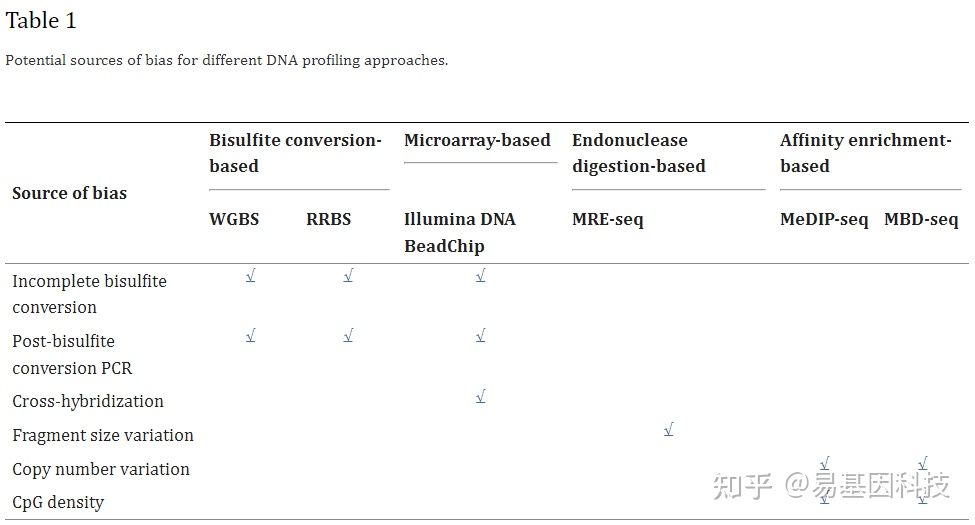 亚硫酸盐测序可以在全基因组(WGBS)中实现单个CpG的单碱基分辨率,即使相对困难的区域也能实现(RRBS)(图4),且NGS测序的碎片大小偏倚和基础组成可能会引入新的检测偏差和覆盖范围限制。