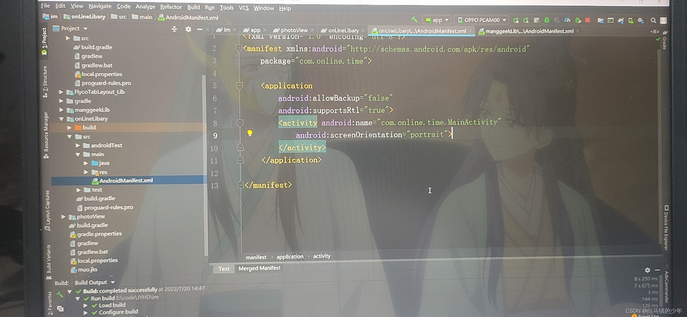 注,若是报AndroidManifest合并异常,修改类库中的功能清单文件,附上我的类库功能清单修改示例