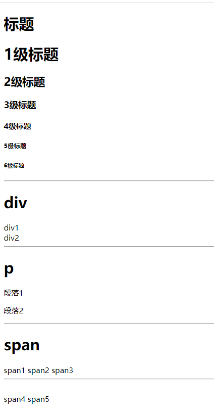3.h1-h6 标签、div标签、p标签、span标签、hr、br标签