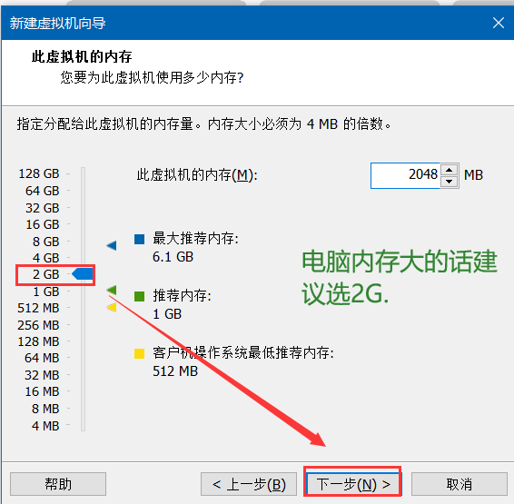 7.下一步->选择虚拟机的内存->下一步