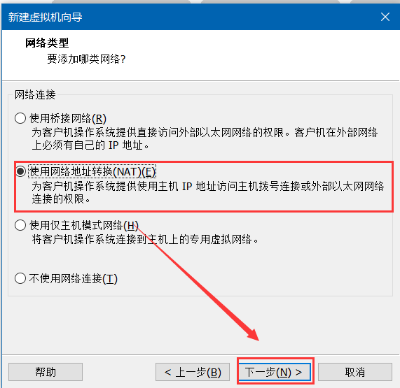 8.选择网络模式(建议NAT)->下一步