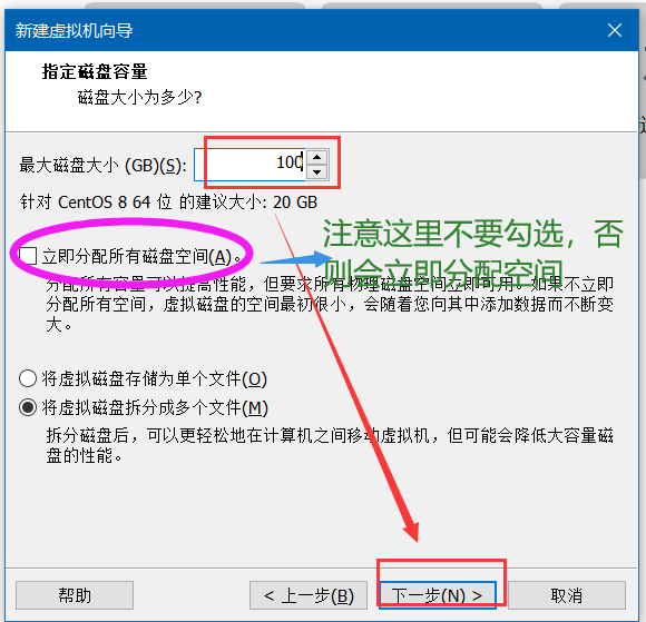 10.创建新虚拟机磁盘->下一步->设置磁盘大小->下一步