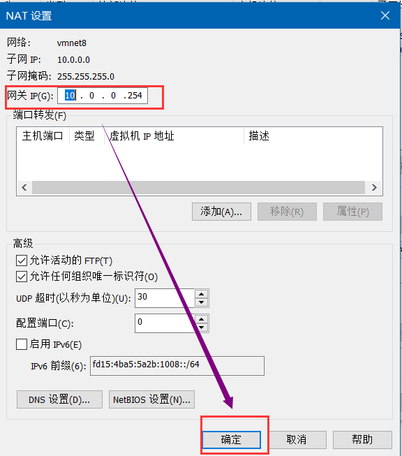 3.点击NAT设置->网关IP->确定