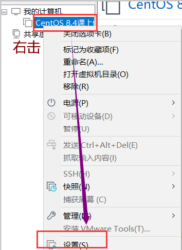 1.右击虚拟机,点击设置可以查看硬件信息,也可以修改