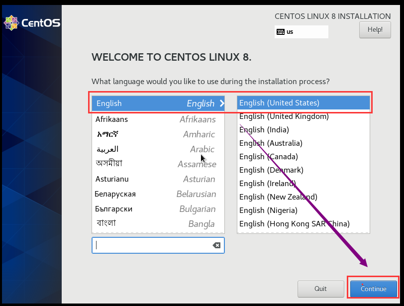 1.语言选择:建议英文->continue