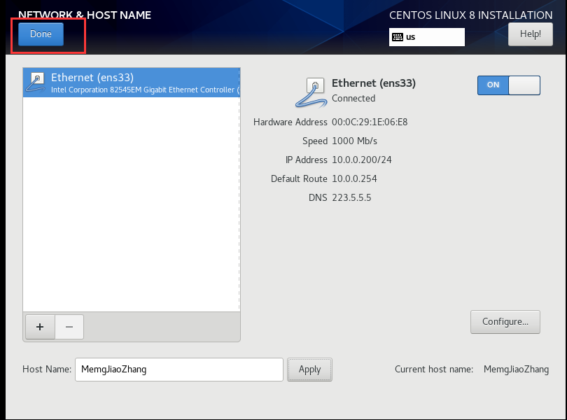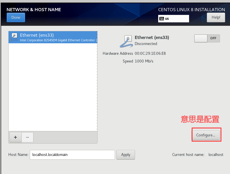 2.点击network&hostname->configure(配置)