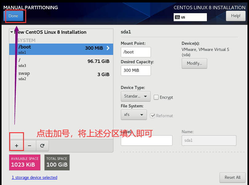 第三个分区:根分区 /分区(相当于C盘) 剩余的空间全给这里