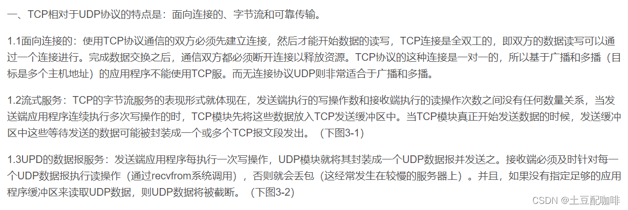 TCP是面向连接的传输控制协议,而UDP提供了无连接的数据报服务;