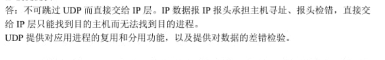 15、某个应用进程使用运输层的UDP,然而继续向下交给IP层后,又封装成IP数据报。既然都是数据报,可否跳过UDP而直接交给IP层?哪些功能UDP提供了但IP没提提供?