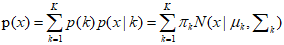 prob[:, k] = phi(Y, mu[k], cov[k])
