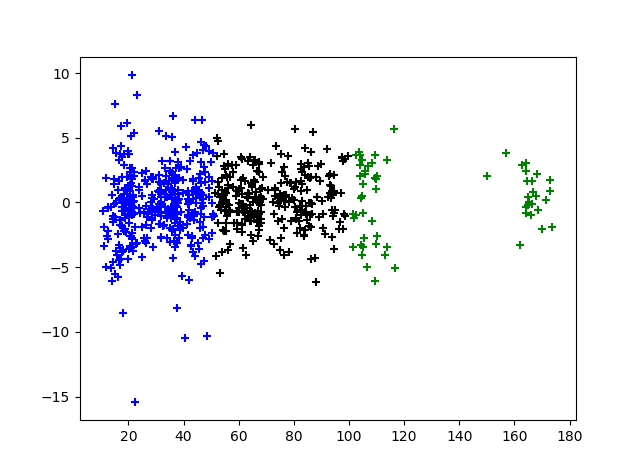 首先取r=0.006情况下对应K-Means结果第一列的聚类情况,聚类结果如图4.4所示。从图中可以看出当r=0.06时对不同的数据会聚为数量不等的簇。原因是Mean-Shift为基于密度的聚类,聚成簇的数量是算法自行确定的。