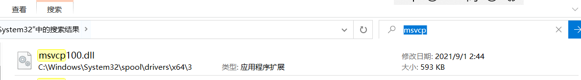1.执行服务安装命令mysqld --install的时候,如果您的系统提示“没有找到msvcp100.dll”或者“缺少msvcp100.dll”等类似错误信息,直接打开C:\Windows\System32,右边搜索框,搜索所缺dll文件
