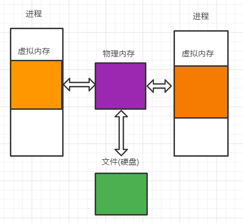 如上图:内存映射文件意思就是吧一个硬盘上的文件映射到物理页上在把物理页映射到虚拟内存上。