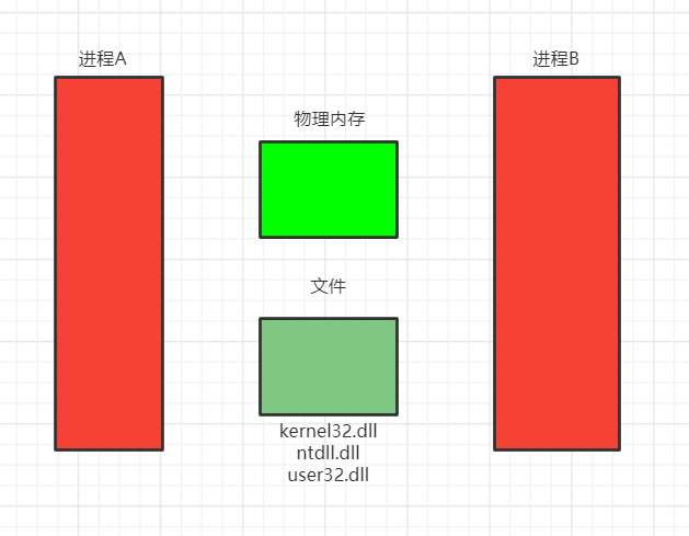 我们每一个进程启动时都会映射很多dll。这些dll在物理页上只有一份,而且每个进程都会用这些dll,操作系统不会为每个进程都单独分一块内存,这样就太浪费空间了。我们使用的内存有两种,私有和公有。我们使用的大多都是这种映射的公有的。所以无论是ntdll.dll还是user.dll在物理内存上都只有一份。进程使用时会映射到进程中。