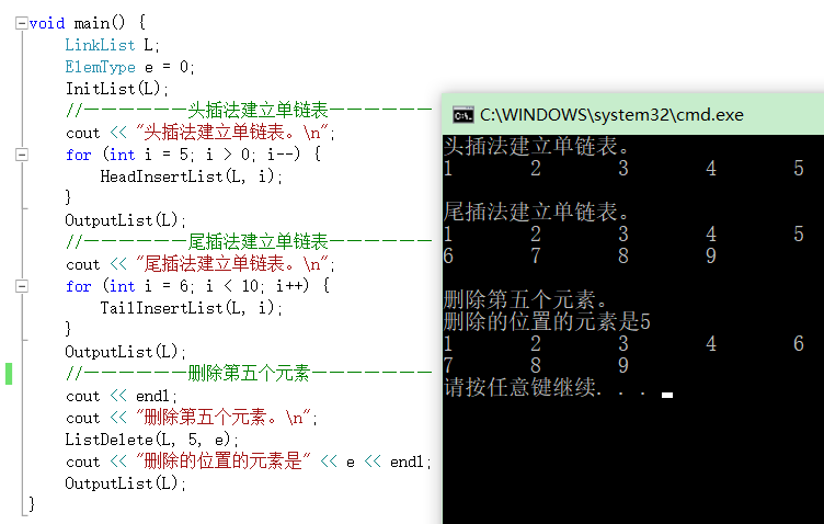 ListDelete(L, 5, e);