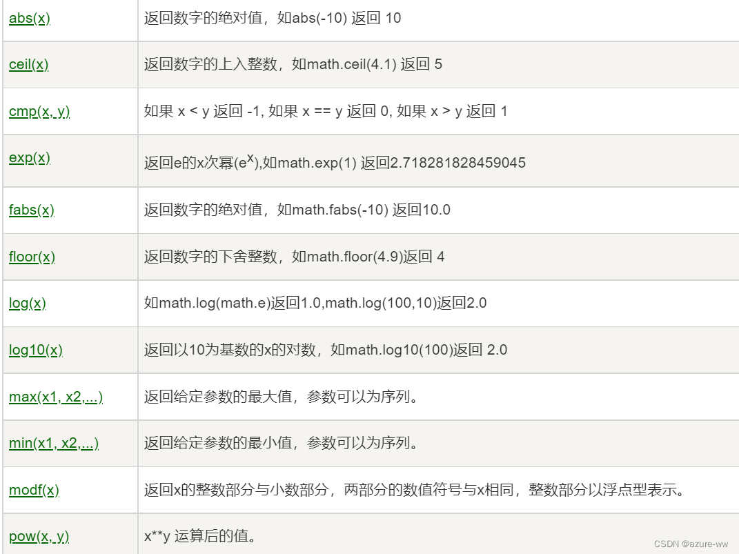 | 序号 | 函数 |