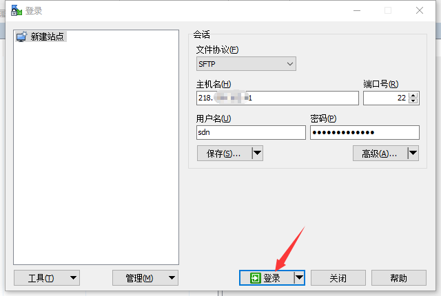 2.1 填写好主机IP、用户名、密码等信息