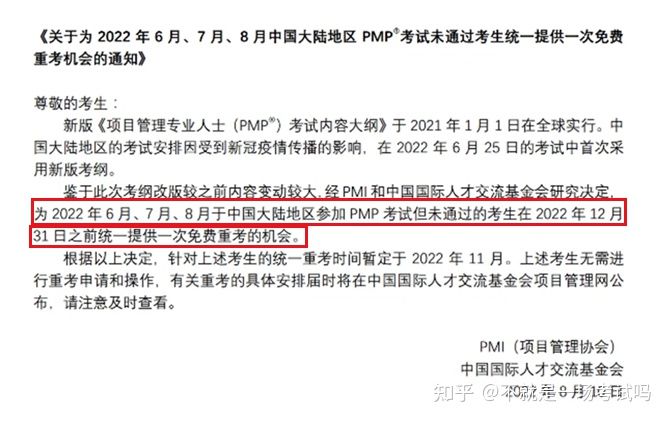 2022年 7月考的是新考纲,有50%的敏捷题型,考题相对旧考纲灵活很多,混合型项目内容较多,要是不好好备考,很有可能挂哦,所以 PMI 官方都发布通知,7、8、9 月没考过的考生可以免费重考一次。