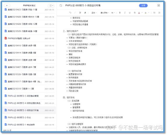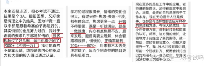 3、观看的往期的同学经验总结有助于分析自己的学习情况,比如:视频有些同学的学习方法是通过视频,然后购买另外的书籍(PMP 解题秘籍,PMBOK 备考指南等等)来辅助学习。但是我就没有考虑,因为学习时间的 3 个月不足让我完成这么大量的阅读和记录。