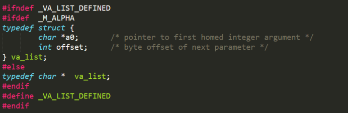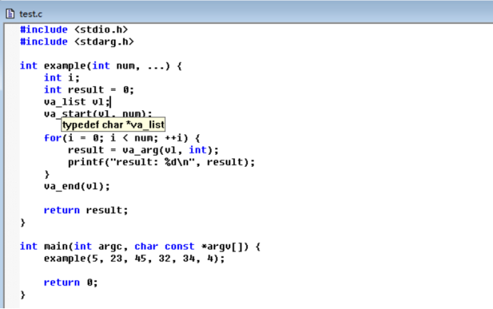 在VC++6.0中,va_list是结构体类型或者是char *类型。通过VC++6.0的类型提示可以看出,此时的va_list是char *。