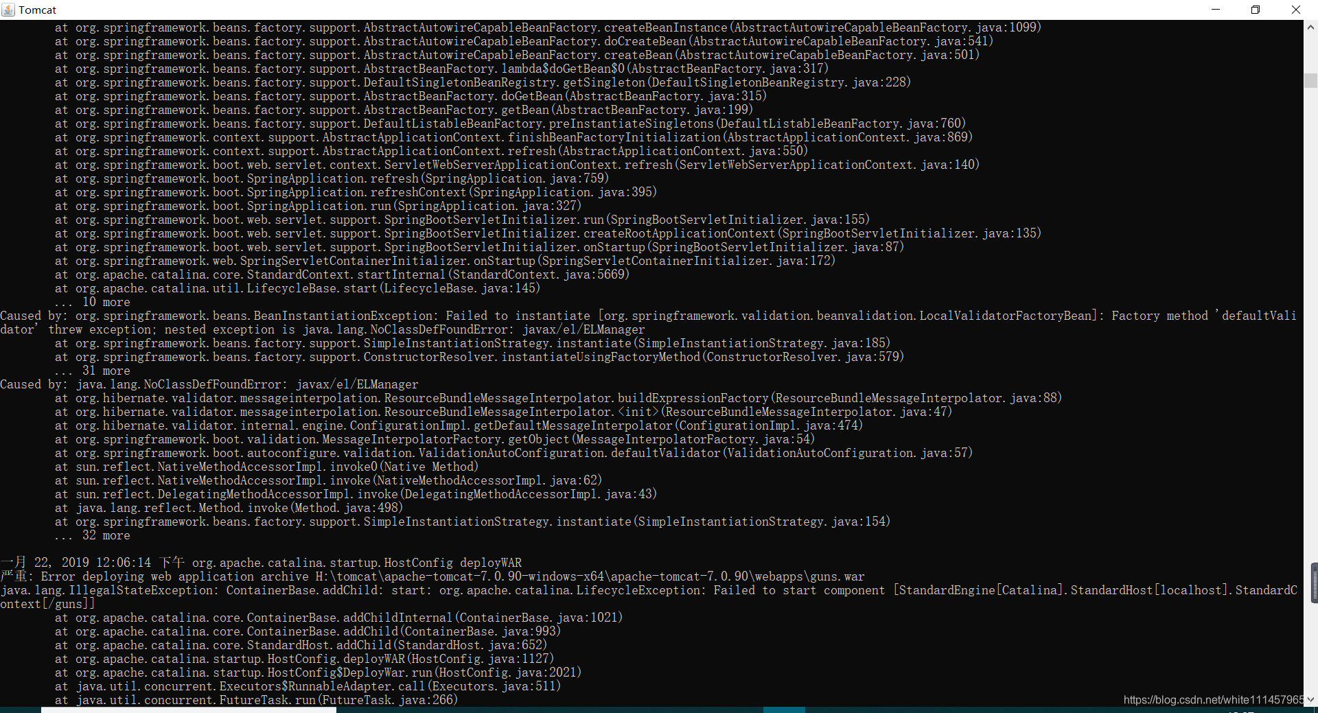 问题描述:spring boot项目,本地调试完全ok,然后打war包部署至服务器出现错误信息如下图所示:
