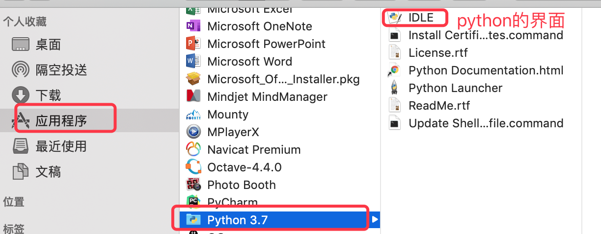 安装完成后,"应用程序"中会出现刚安装的python3: