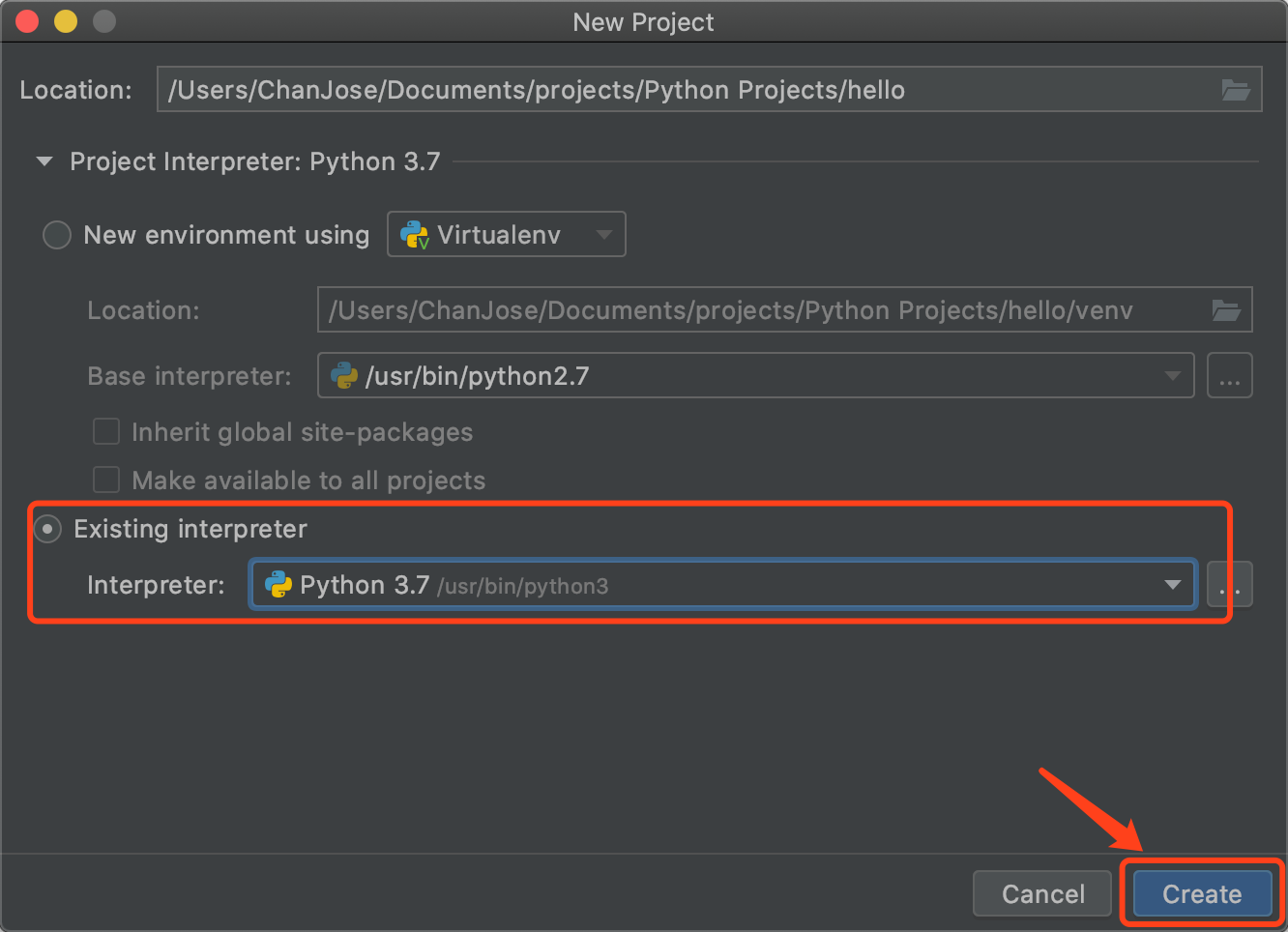 (2)点击 "Project Interpreter"->“Existing interpreter”,如下图: