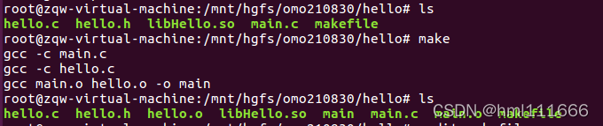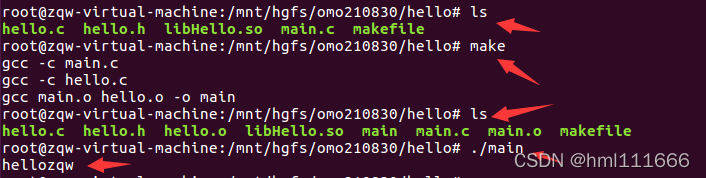 ①gcc main.o hello.o -o main:编译出可执行文件main。-o表示指定的可执行文件名