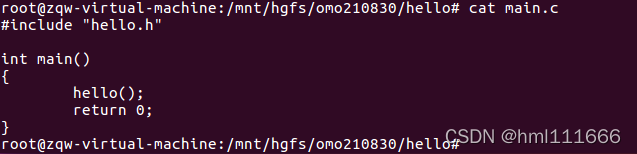 main.c、hello.h、hello.c文件(此处仅展示main.c)