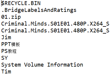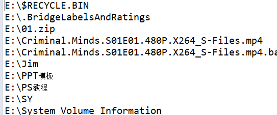 }此时则样就把我E盘中的文件名全部打印(截取一部分):