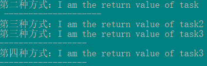 Console.WriteLine("task的返回值是:" + task.Result);