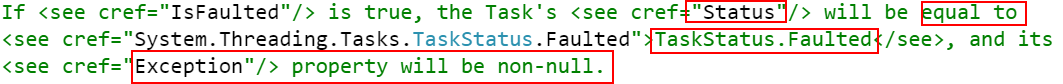 }Task<TResult> FromException<TResult>(Exception exception)//Creates a Task`1 that's completed with a specified exception.建立一个有指定异常的task.
