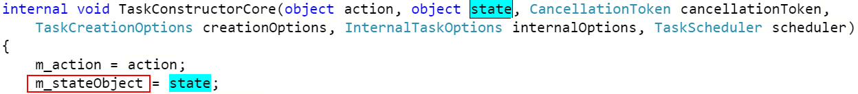 ③The m_action System.Object field stores a reference to the Task's delegate, and the m_stateObject System.Object field stores the async state passed to the Task by the developer. Finally, for debuggers that parse stack frames, the InternalWait method serves a potential marker for when a Task is entering a wait operation.