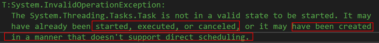Starts the Task, scheduling it for execution to the current TaskScheduler.使用当前TaskScheduler去执行当前Task.