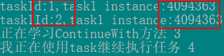 Console.WriteLine("taskId:" + task.Id + ",task1 instance:" + task.GetHashCode());