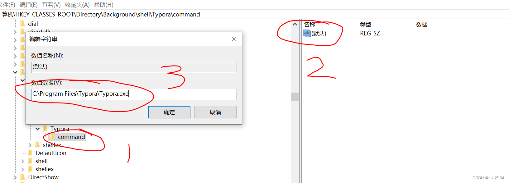 具体过程:选中command项,在双击右侧的图标,将路径放到“数值数据”中,点击确定