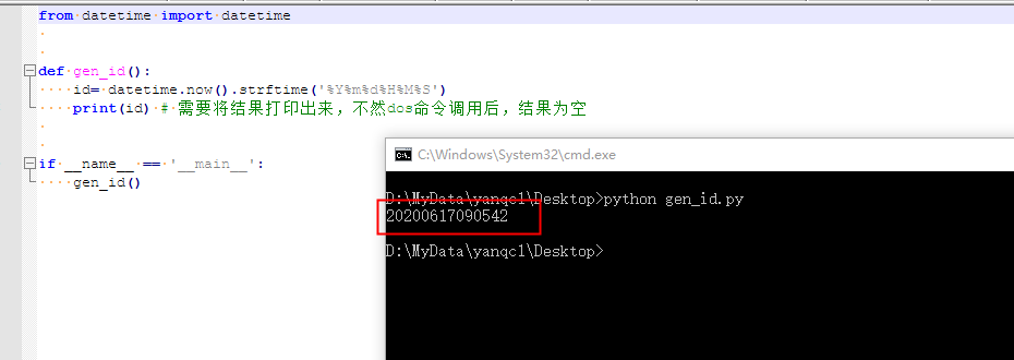 print(id) # 需要将结果打印出来,不然dos命令调用后,结果为空