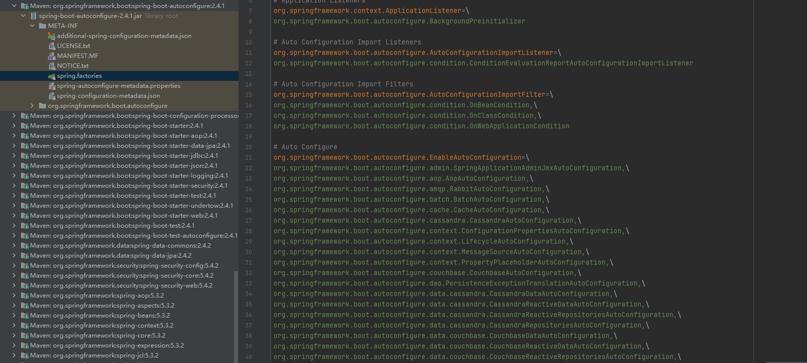 1 第三方框架的jar包里面META-INF里面的spring.factories写了各种自动装配类,springboot里面预先也写好了可能你会用到的第三方装配类,监听器